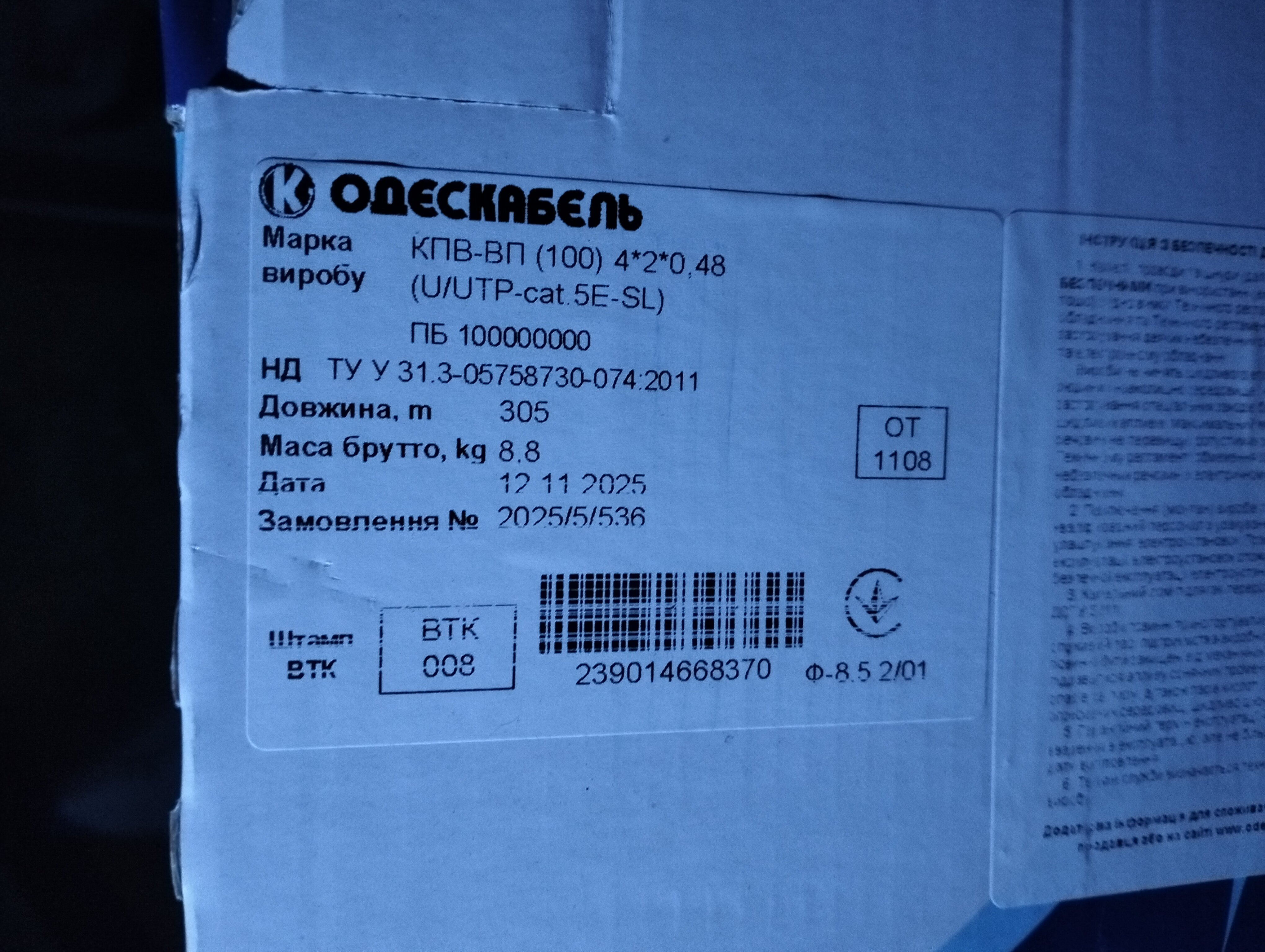 Продам ОК-НЕТ мідний внутр білий без екрану КПВ-ВП (100) 2*2*0,50 (U/UTP-cat.5) 500м